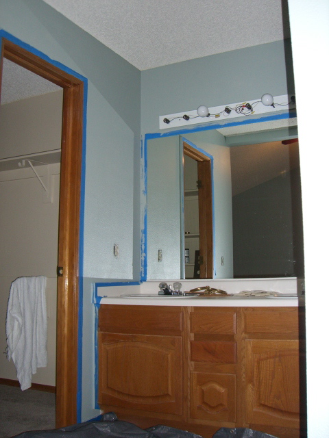The cabinet color is "Antique White" and the background color is "Clay Pot." This spicy, terra cotta color really makes the cabinets pop... and, it makes you want to cook and eat! ;-) The cabinets were well worth all the work. I would recommend painting cabinets to anyone wanting to improve their kitchen without spending a lot of $$. Here is a pic of my windowsill, decorated with two birds my sweet mother-in-law gave me, and a lily from a bouquet my dad sent for Valentine's Day.